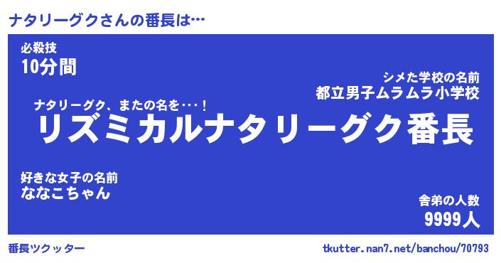 | ポケモン風あだ名 | 『ナタチュウ』『ナタリダネ』 |