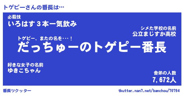 | 意味不明あだ名 | 『ペロリントゲピー』『永久保存トゲピー』 |