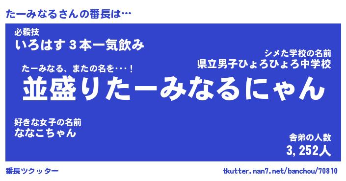 | ピコ太郎風あだ名 | 『タコ二郎』『ピタ二郎』『ター一郎』 |