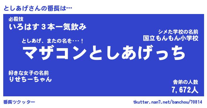 | ピコ太郎風あだ名 | 『トコ史郎』『ピト史郎』『トシ次郎』 |