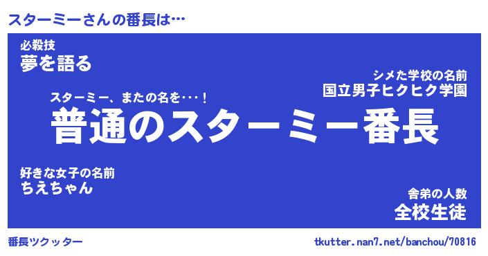 | 男性向けラノベタイトル風あだ名 | 『スターミーの憂鬱』 |