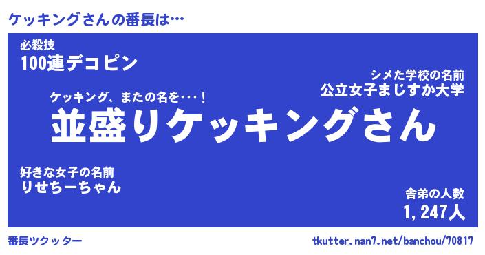 | ファンタジー風あだ名 | 『ケッフェル』『エターナルケッキングー』 |