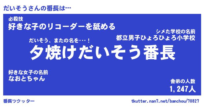 | 欧米人風あだ名 | 『マイケルだいそう』『ウサインだいそう』 |