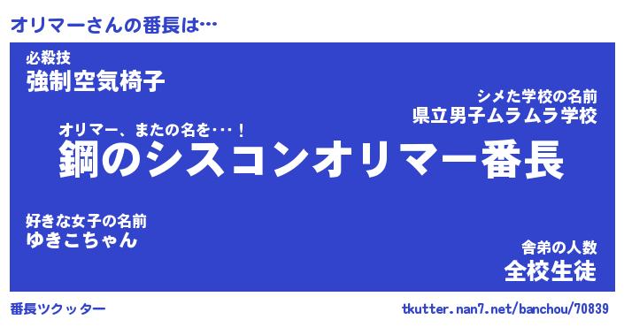 | 意味不明あだ名 | 『ペロリンオリマー』『永久保存オリマー』 |