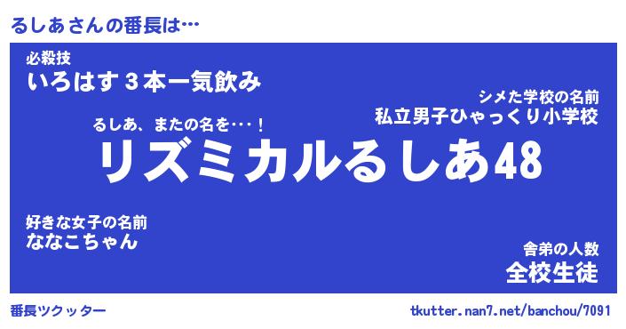 | 肩書あだ名 | 『るしあ店長』『るしあ総理大臣』 |