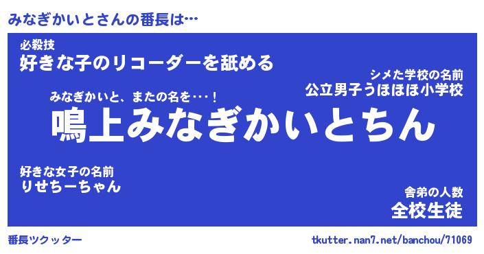 | 肩書あだ名 | 『みなぎかいと御曹司』 |