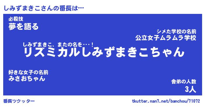 | 女子向けラノベタイトル風あだ名 | 『(仮)しみずまきこのやんごとなき事情』 |