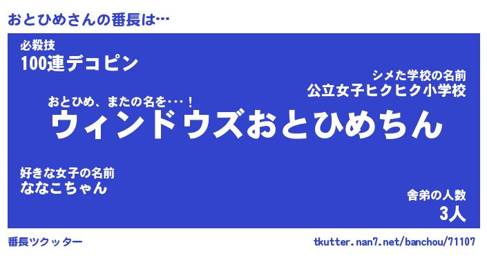 | ヘコむあだ名 | 『おとにー』『つくし』『おと太郎』 |