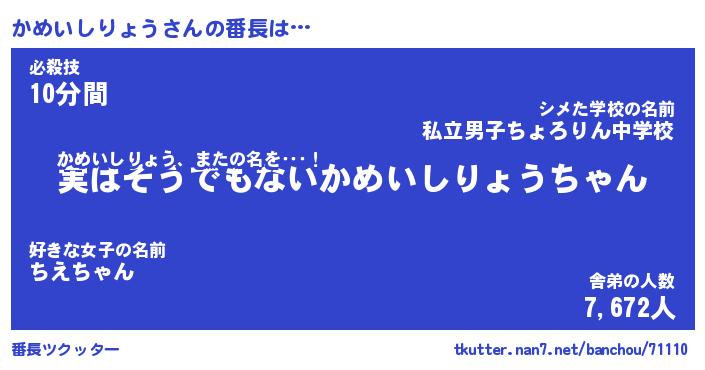 | 2回繰り返すあだ名 | 『かめかめ』『かかめめ』『ぬれぬれ』 |