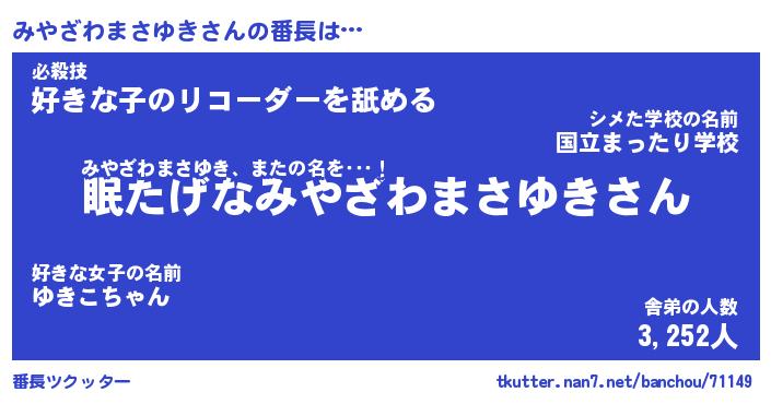 | 伝説のあだ名 | 『封印されしスナイパーみやざわまさゆき』 |