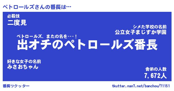 | 男性向けラノベタイトル風あだ名 | 『ペトロールズの憂鬱』 |