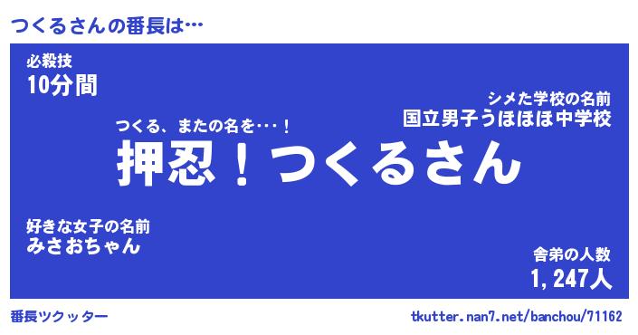 | ヒーロー風カッコイイあだ名 | 『スーパーツクル』『ウルトラつくるマン』 |