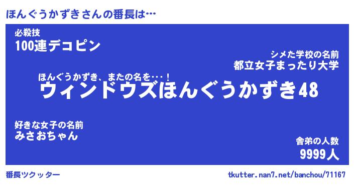 | ヒーロー風カッコイイあだ名 | 『スーパーホングウカズキ』 |