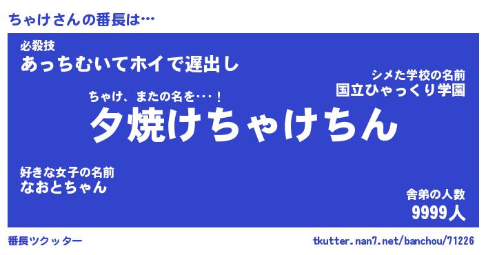 | 伝説のあだ名 | 『封印されしスナイパーちゃけ』 |
