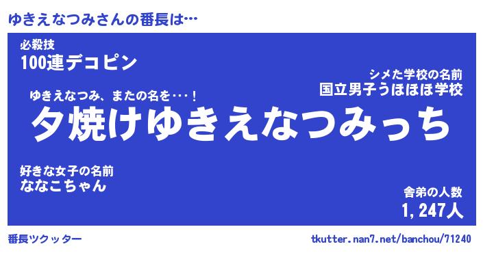 | ヒーロー風カッコイイあだ名 | 『スーパーユキエナツミ』『黄金騎士ユキ』 |