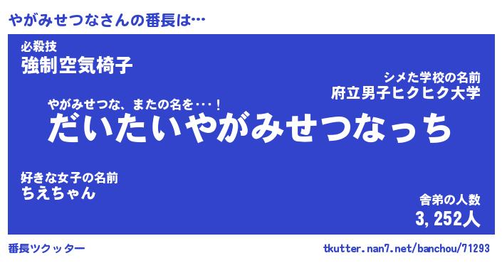 | ヒーロー風カッコイイあだ名 | 『スーパーヤガミセツナ』『暗黒騎士ヤガ』 |