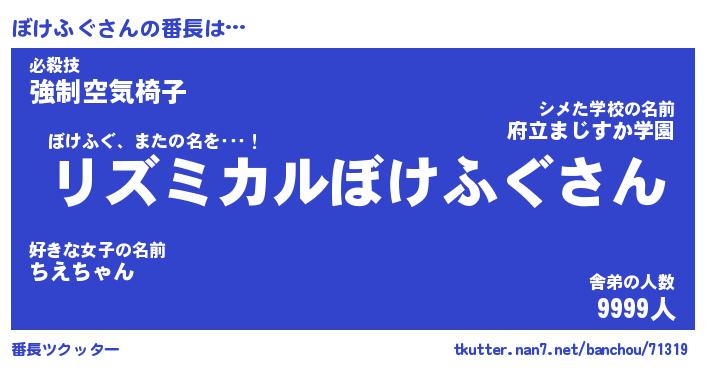 | 男性向けラノベタイトル風あだ名 | 『ぼけふぐの憂鬱』 |