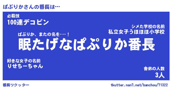 | 意味不明あだ名 | 『ペロリンぱぷりか』『永久保存ぱぷりか』 |