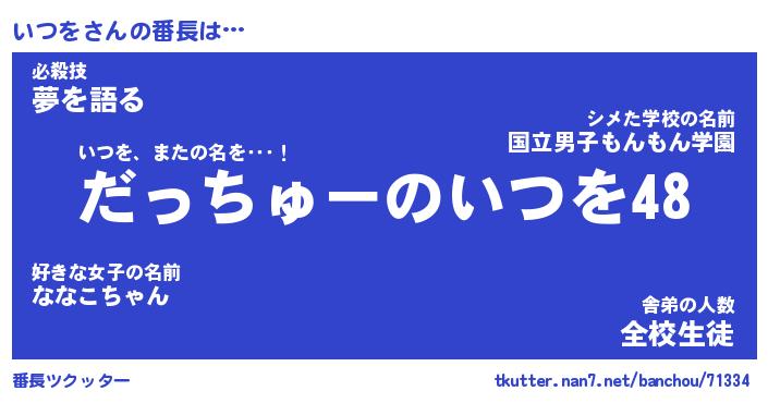 | 肩書あだ名 | 『いつを御曹司』『いつを大統領』 |
