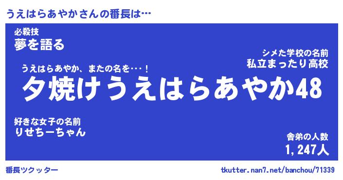 | 肩書あだ名 | 『うえはらあやか御曹司』 |