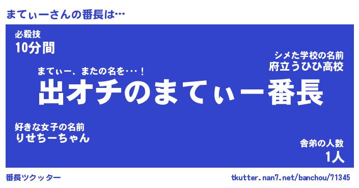 | 伝説のあだ名 | 『伝説のスナイパーまてぃー』 |