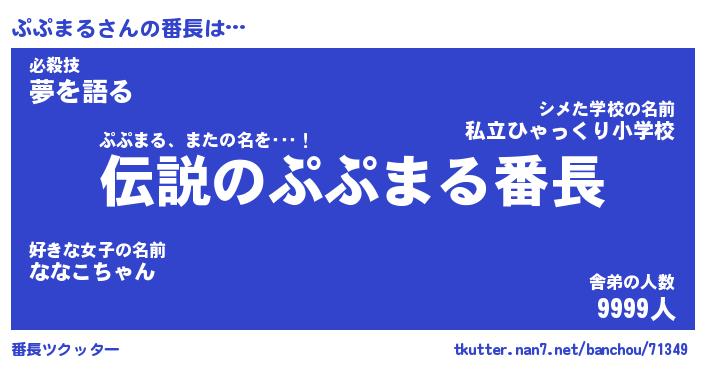 | 肩書あだ名 | 『ぷぷまる店長』『ぷぷまる総理大臣』 |