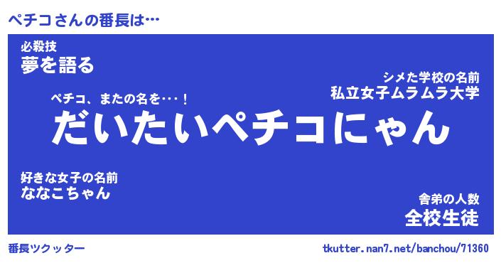 | ファンタジー風あだ名 | 『ペチフェル』『エターナルペチコー』 |