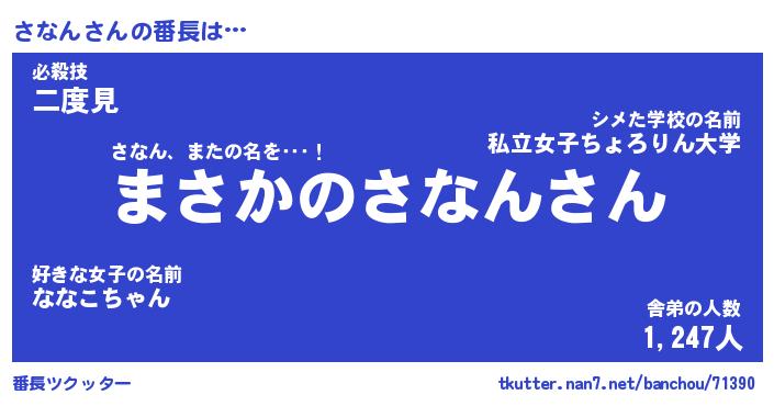| 肩書あだ名 | 『さなん店長』『さなん総理大臣』 |