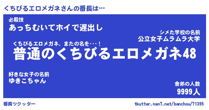 | ヘコむあだ名 | 『くちにゅー』『なまこ酢』 |