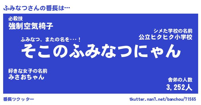 | ヒーロー風カッコイイあだ名 | 『スーパーフミナツ』『幻影騎士フミ』 |