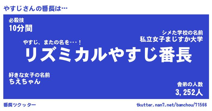 | 男性向けラノベタイトル風あだ名 | 『やすじの憂鬱』 |