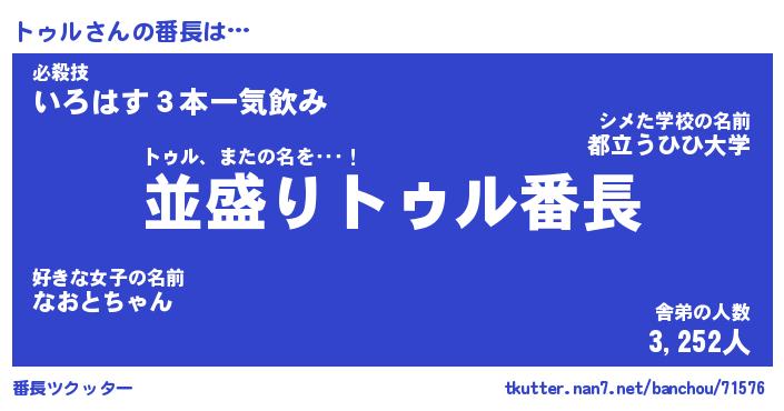 | ヘコむあだ名 | 『トゥもー』『なまこ酢』『トゥを』 |