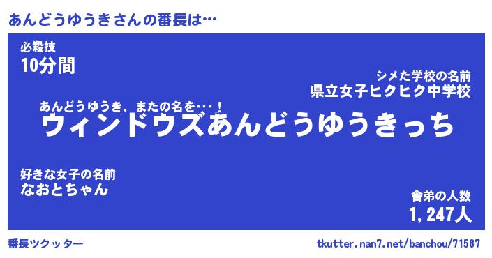 | 伝説のあだ名 | 『伝説のスナイパーあんどうゆうき』 |