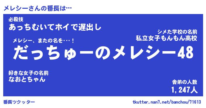 | ヘコむあだ名 | 『メレにー』『レバニラ』『メレを』 |