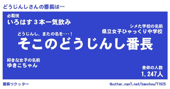 | 男性向けラノベタイトル風あだ名 | 『どうじんしの憂鬱』 |
