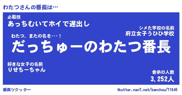 | ポケモン風あだ名 | 『ワタチュウ』『ワタツダネ』 |