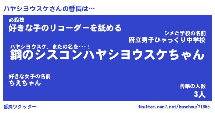 | 肩書あだ名 | 『ハヤシヨウスケ店長』 |