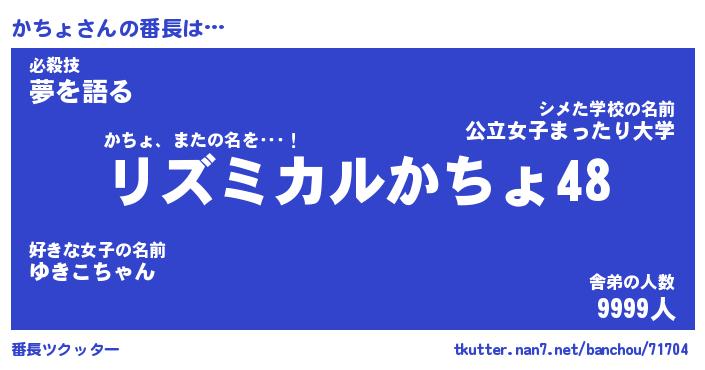 | 伝説のあだ名 | 『伝説の竜騎士かちょ』 |