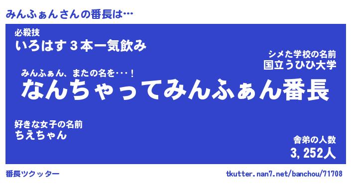 | 伝説のあだ名 | 『伝説のスナイパーみんふぁん』 |