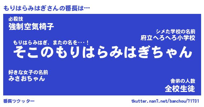 | ヒーロー風カッコイイあだ名 | 『スーパーモリハラミハギ』 |