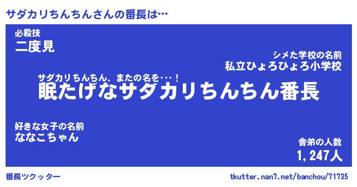 | 男性向けラノベタイトル風あだ名 | 『サダカリチンチンアートオンライン』 |