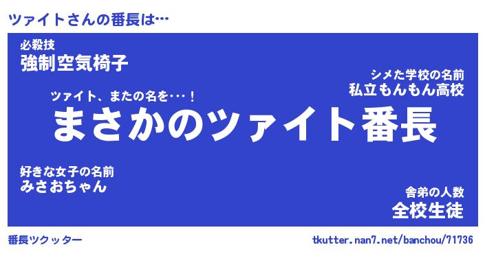 | ヒーロー風カッコイイあだ名 | 『スーパーツァイト』『暗黒騎士ツァ』 |