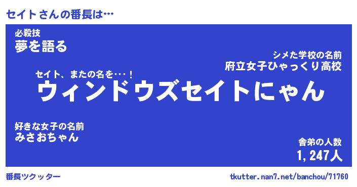 | 男性向けラノベタイトル風あだ名 | 『セイトの憂鬱』 |