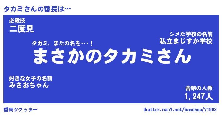 | 肩書あだ名 | 『タカミ店長』『タカミ大統領』 |