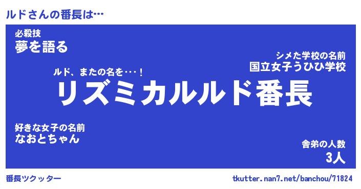 | ヘコむあだ名 | 『ルドふぇ~』『豆乳』『ルドを』 |