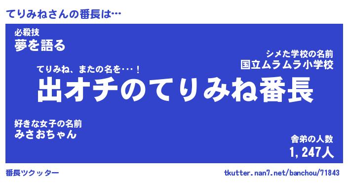 | 肩書あだ名 | 『てりみね店長』『てりみね総理大臣』 |