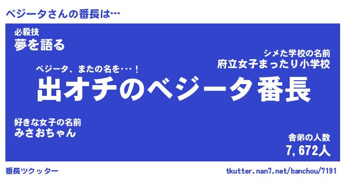 | 肩書あだ名 | 『べジータ御曹司』『べジータ大統領』 |