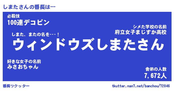 | ヘコむあだ名 | 『しまっふぃ~』『つくし』『しまを』 |