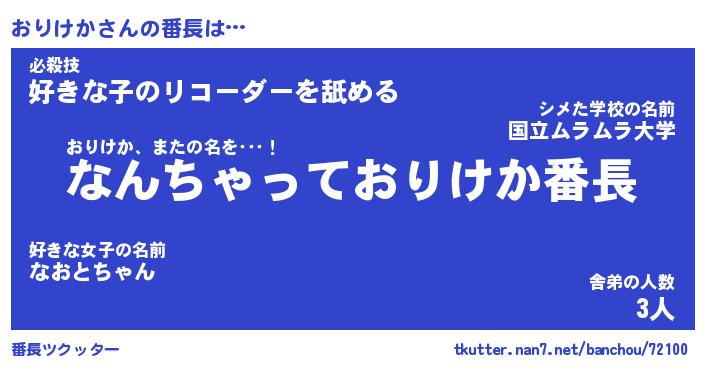 | 意味不明あだ名 | 『ペロリンおりけか』『永久保存おりけか』 |