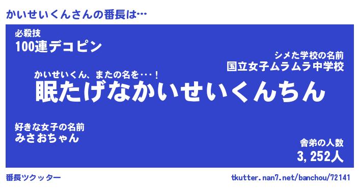 | 男性向けラノベタイトル風あだ名 | 『カイセイクンアートオンライン』 |